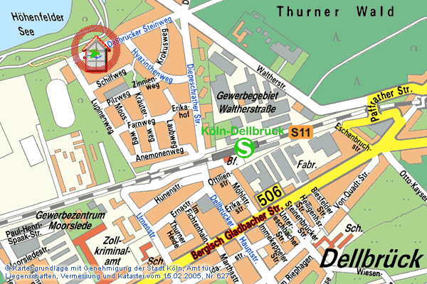 Reisen sie über die Bergisch Gladbacher Straße B506 an, biegen sie dann Richtung Norden